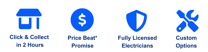 Click and Collect in 2 hours, Price Beat Promise, Fully Licensed Electricians, Custom Options