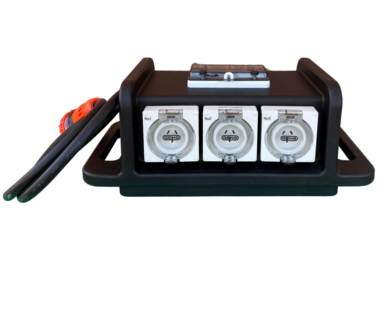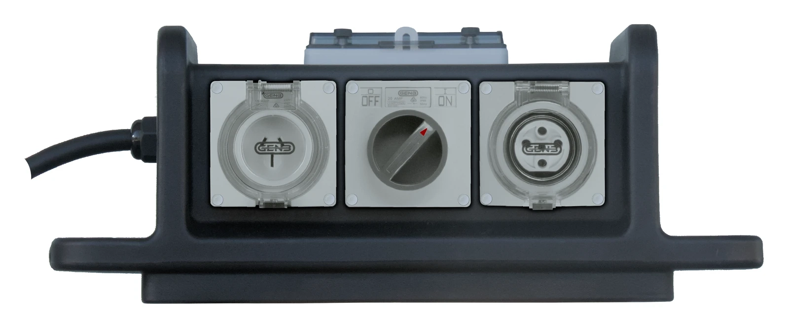 - 1 three-phase 20A IP66 rated socket with surface mounted switch