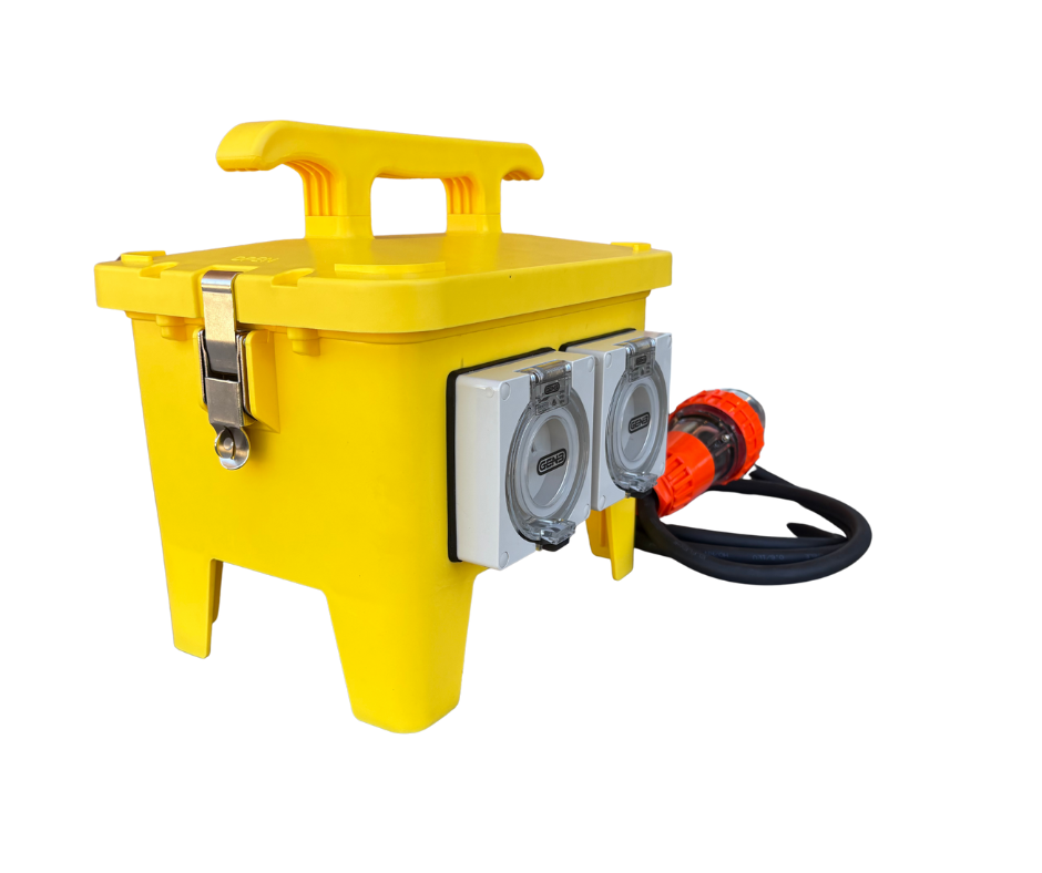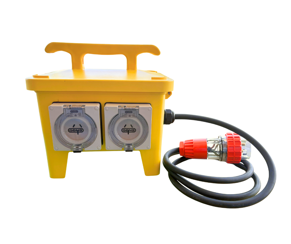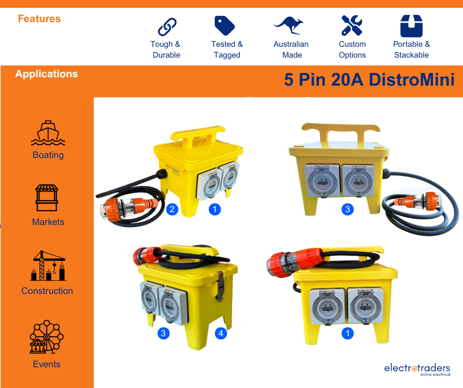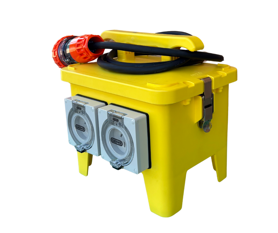 The all new DistroMini by Electrotraders, a compact and light-weight smaller power distribution enclosure providing up to four single phase sockets to power your home or work site.