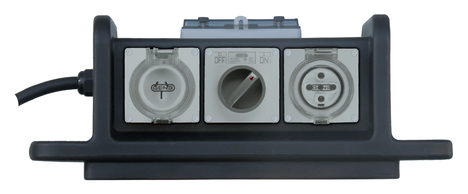 - 1 three-phase 32A IP66 rated socket with surface mounted switch