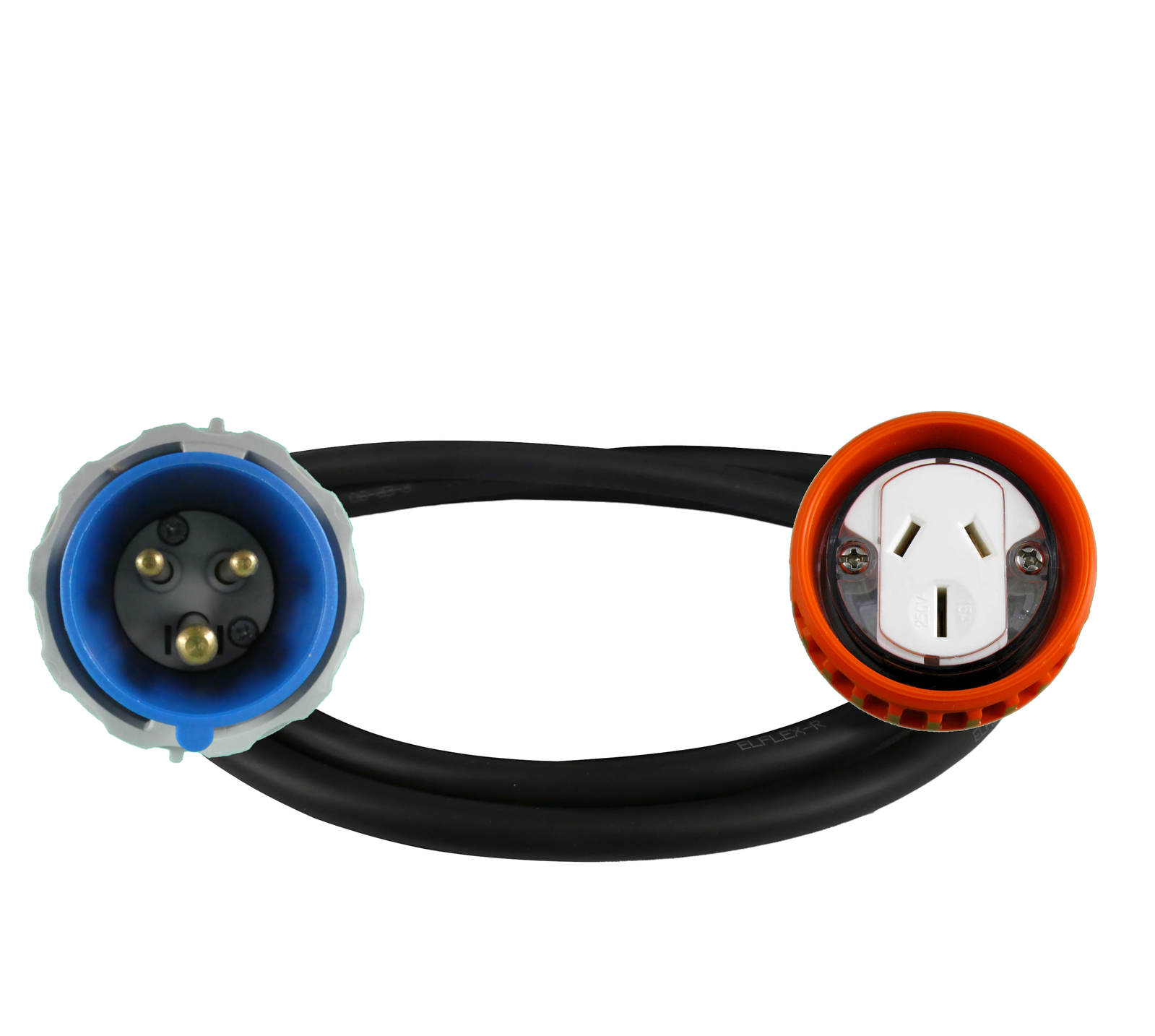 High quality adapter lead assembled, tested and tagged by licensed electricians in Australia. Adapter Lead 3 Pin 16 Amp CEE Form Straight Plug to 3 Pin 15 Amp Flat Socket Single Phase 1m Standard Duty 1.5mm lead