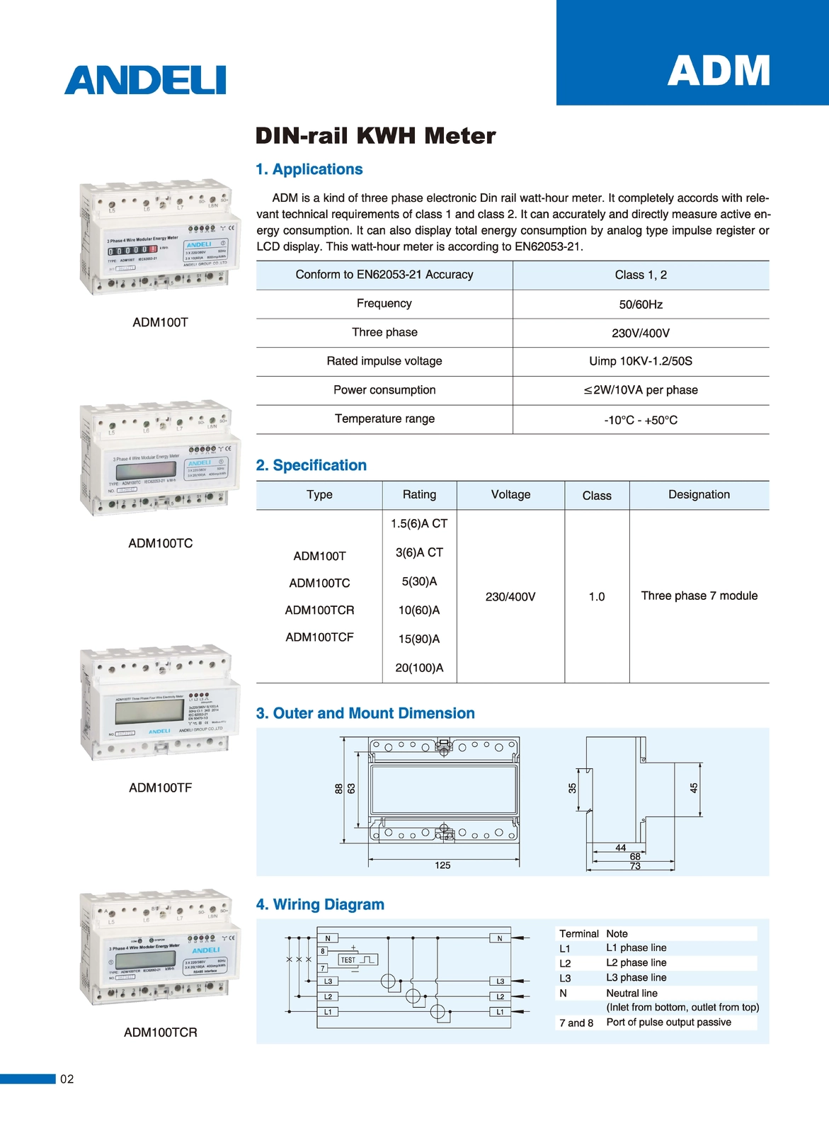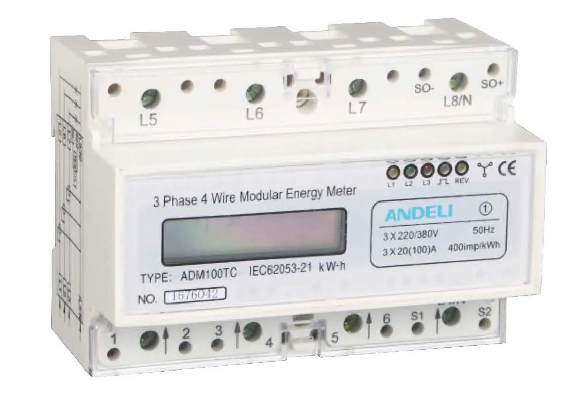 ANDELI ADM100TC 3 Phase 100 Amp Kilowatt Hour Meter DIN Rail Digital