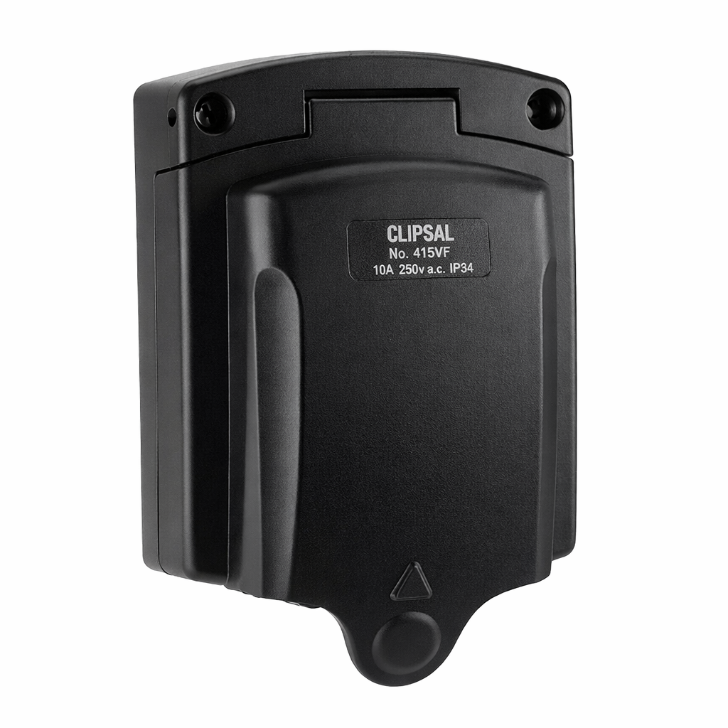 • Clipsal 415VFBK Caravan, RV, Weatherproof 10 Amp Outlet Rated IP34 Black