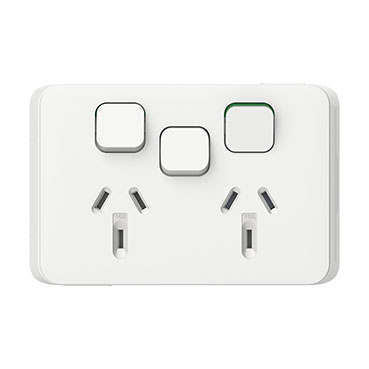 The Clipsal Iconic Twin Switch Power Point provides socket and switch outlet tasks in one convenient fitting. Simple to customise, the outlet has twin switches, includes a removable extra switch, and two widely spaced sockets for larger plugs.