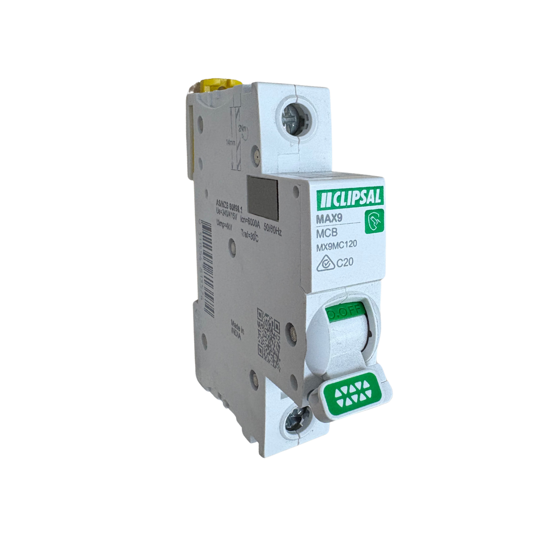 Clipsal MAX9 | Miniature Circuit-Breaker (MCB) | 1P, 20A, C Curve, 6000A, 240/415V, Distribution
