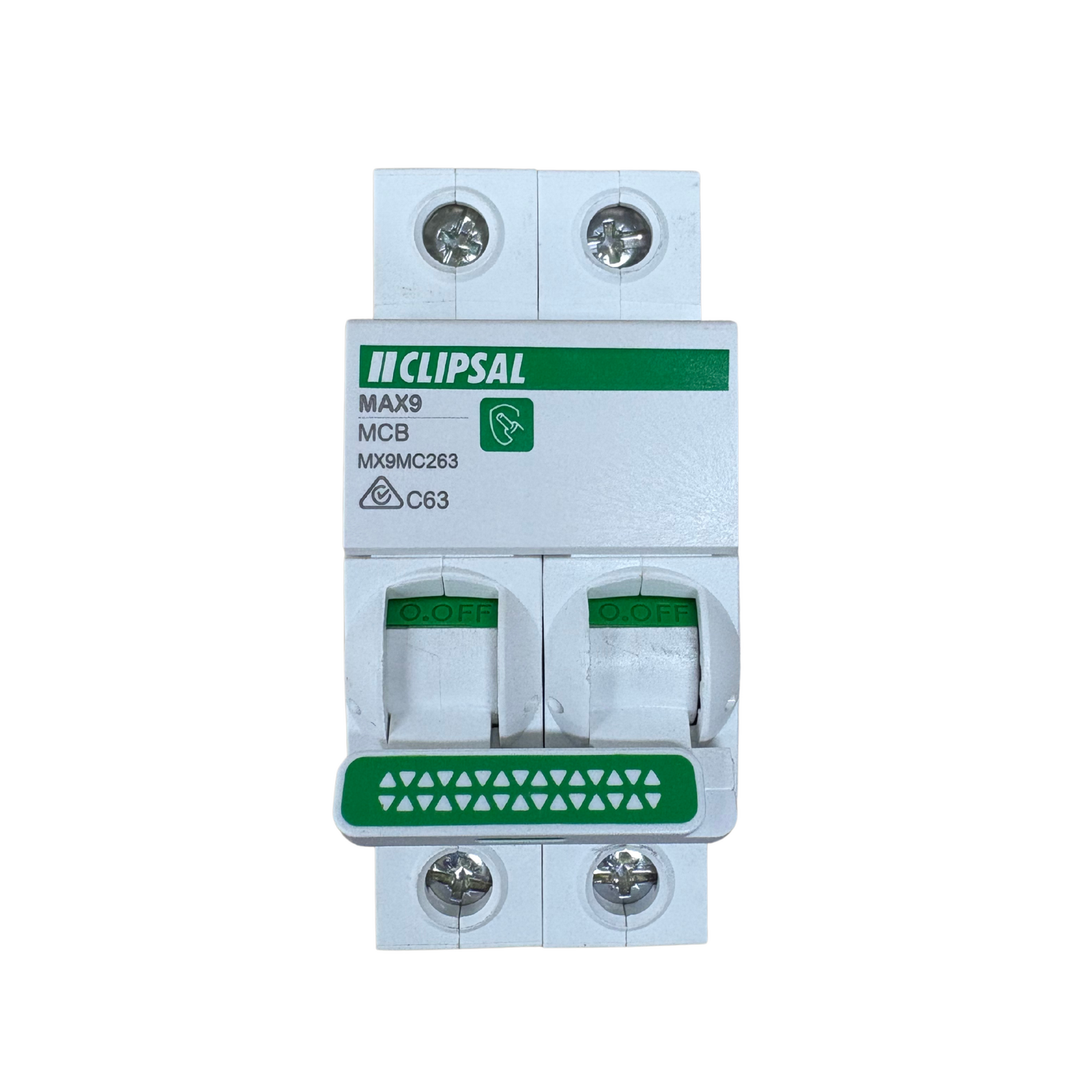 Clipsal MAX9 | Miniature Circuit-Breaker (MCB) | 2P, 63A, C Curve, 6000A, 415V, Distribution