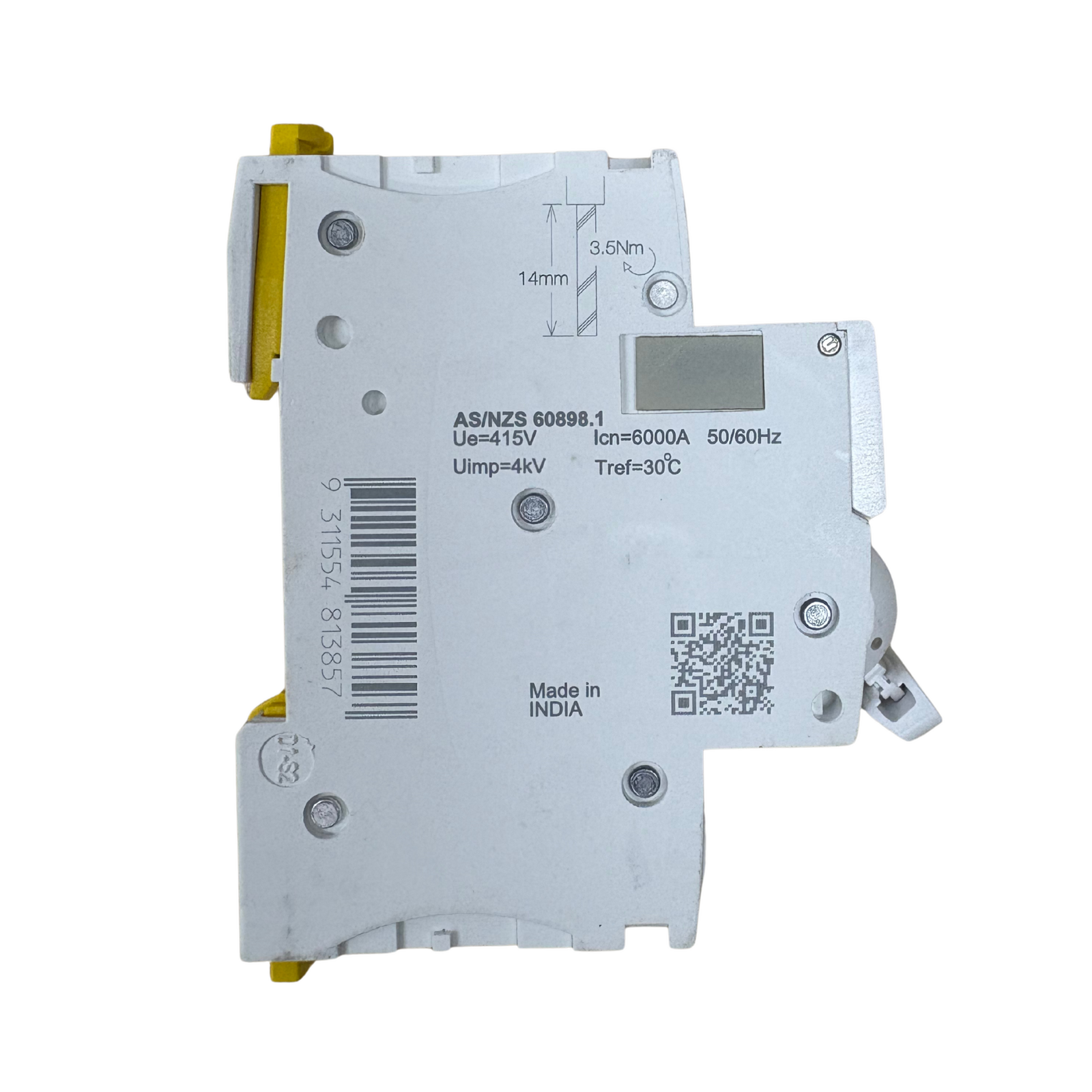 | Breaking capacity | 6000 A Icn at 415 V AC 50/60 Hz conforming to AS/NZS 60898 |