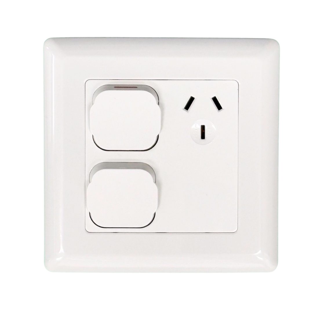 Tesla Large Dolly Power Point with Extra Switch – NDIS Single GPO with added switch control. Combines power and lighting in one accessible unit. Perfect for streamlined installations.