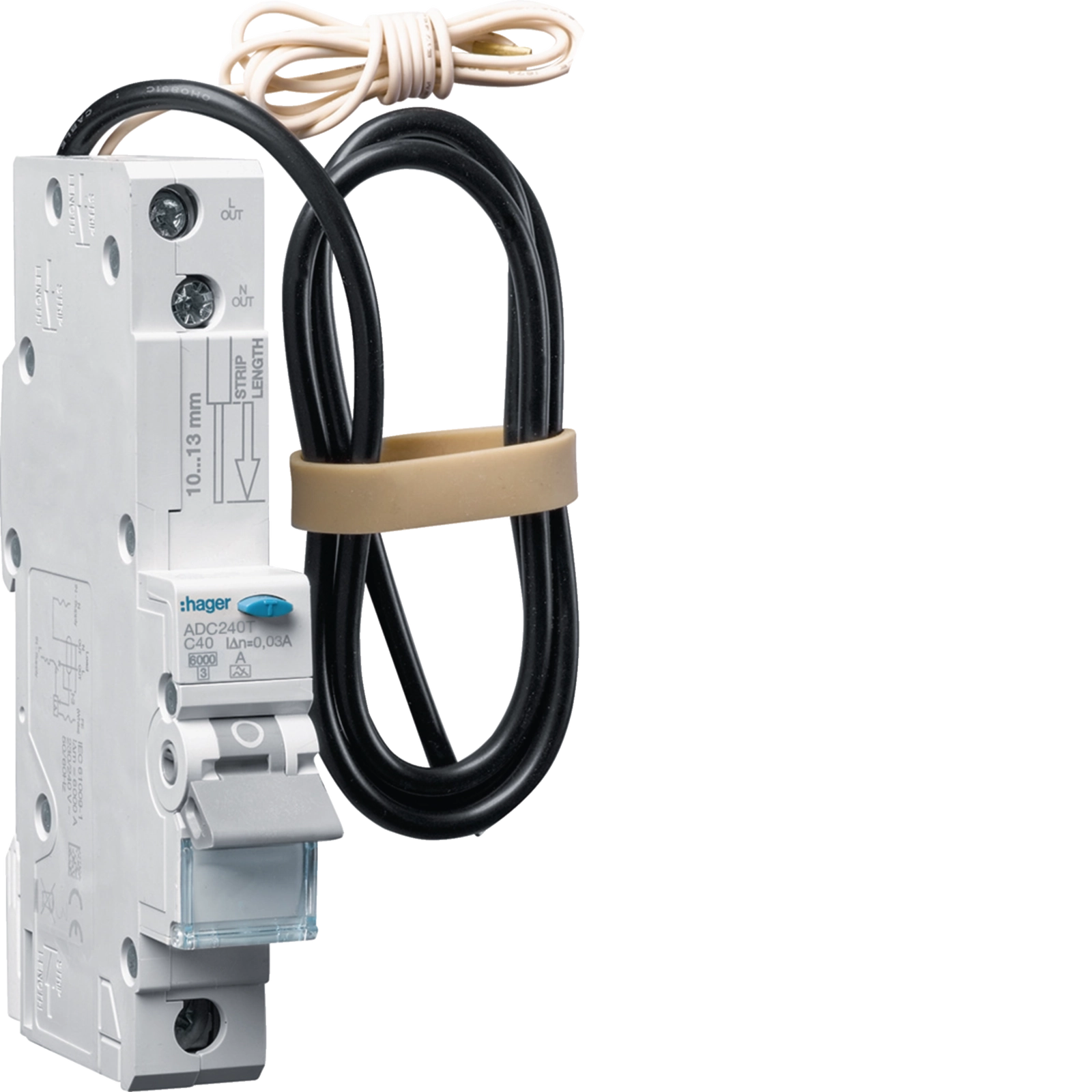 Hager ADC240T 40 Amps 1 Pole RCBO Safety Switch 6kA