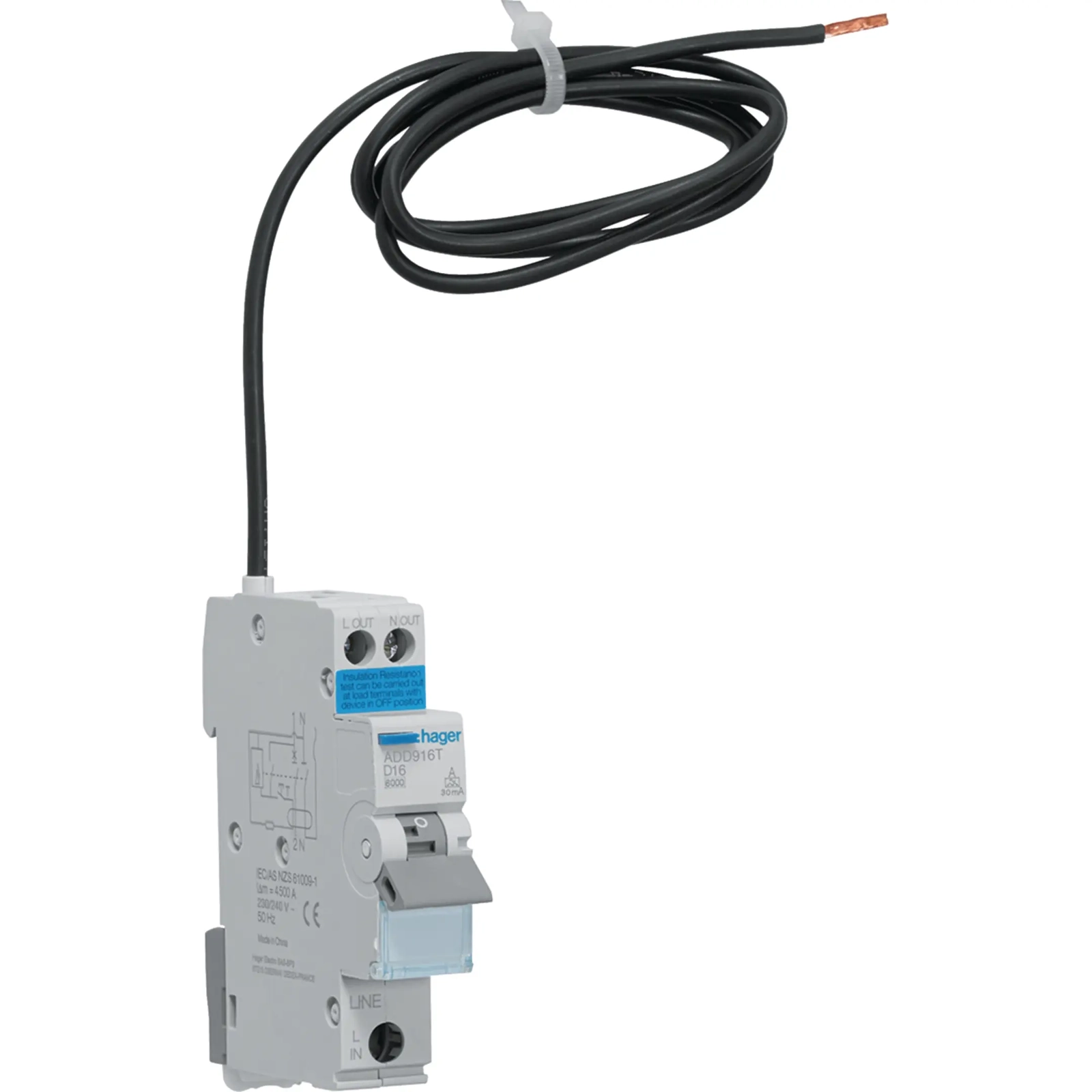 Hager ADD916T 16 Amps 2 Pole D Curve RCBO Safety Switch 6kA