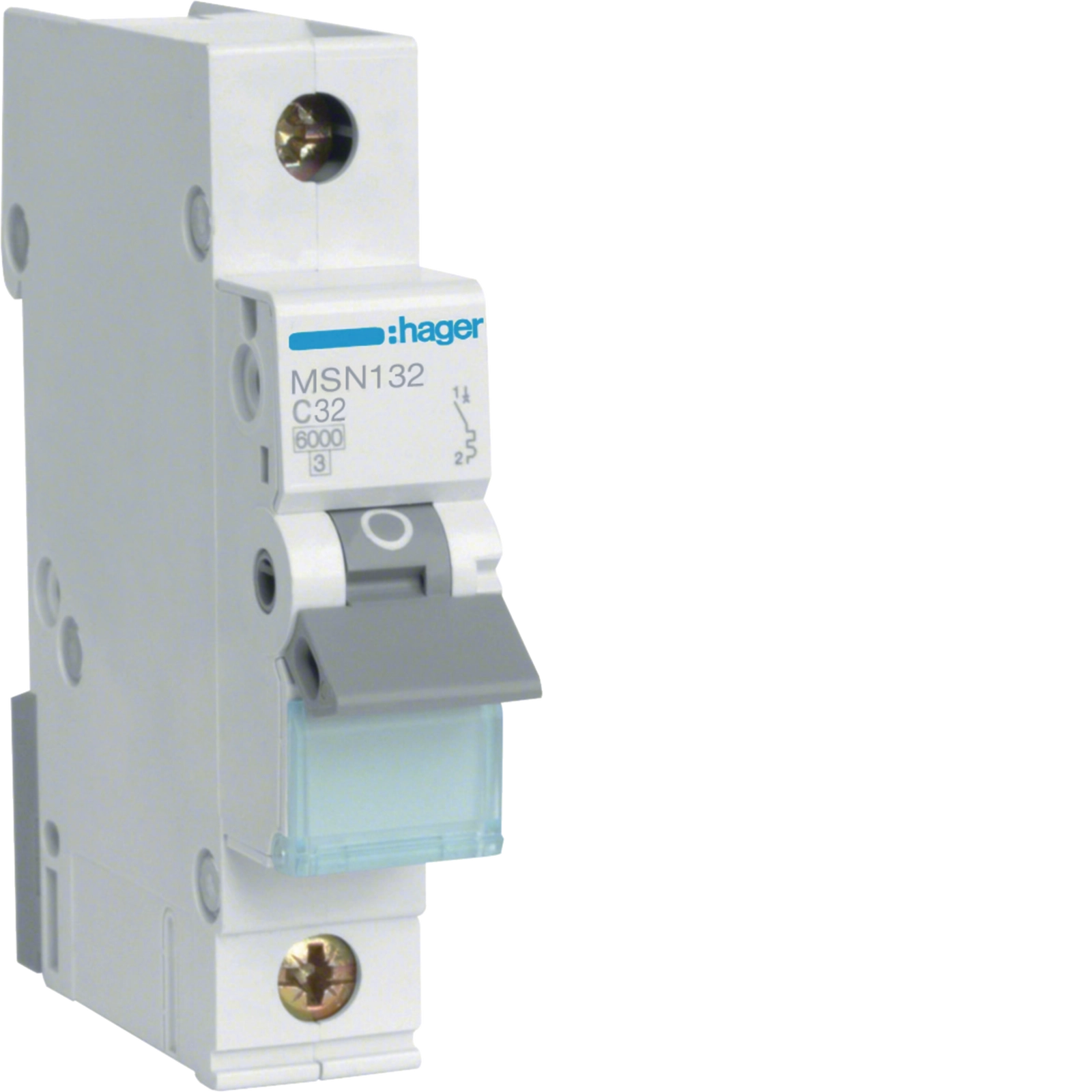 Hager MSN132 32 Amps 1 Pole MCB Circuit Breaker 6kA