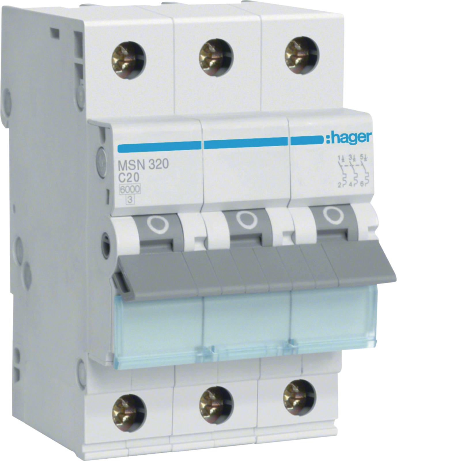 Hager MSN320 20 Amps 3 Pole MCB Circuit Breaker 6kA