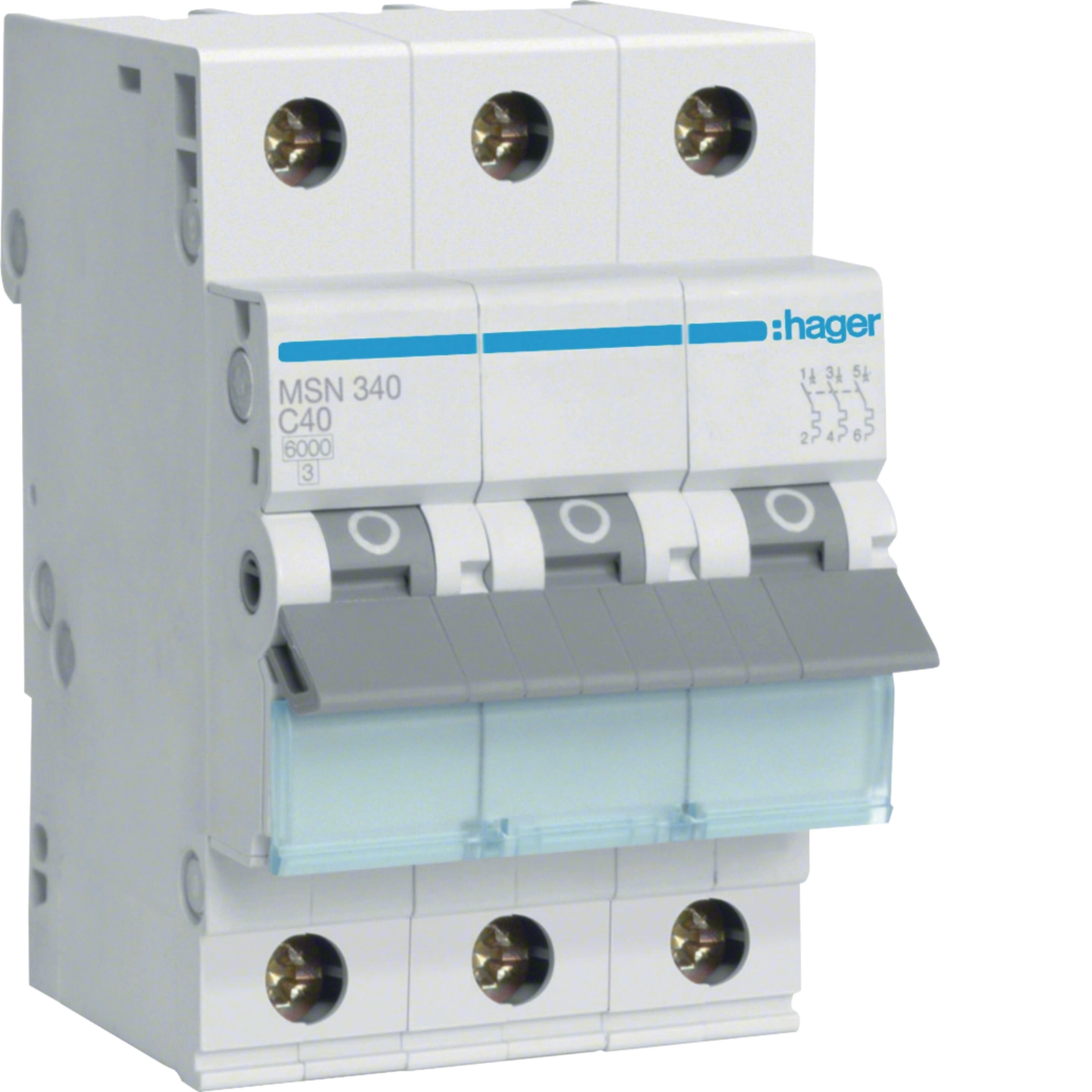 Hager MSN340 40 Amps 3 Pole MCB Circuit Breaker 6kA