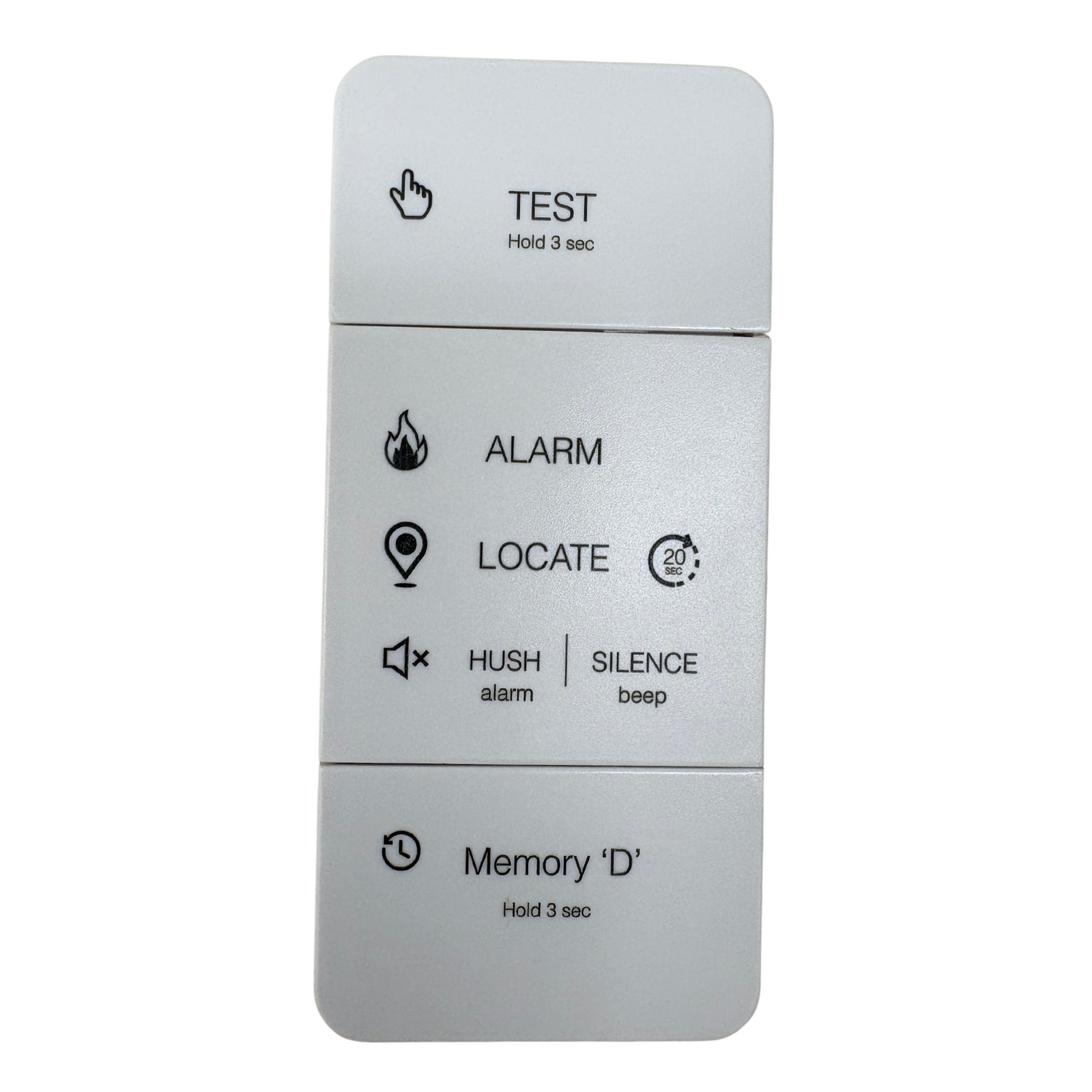 | Function Available | Test alarms, Hush/Silence alarms, Locate triggered alarm |