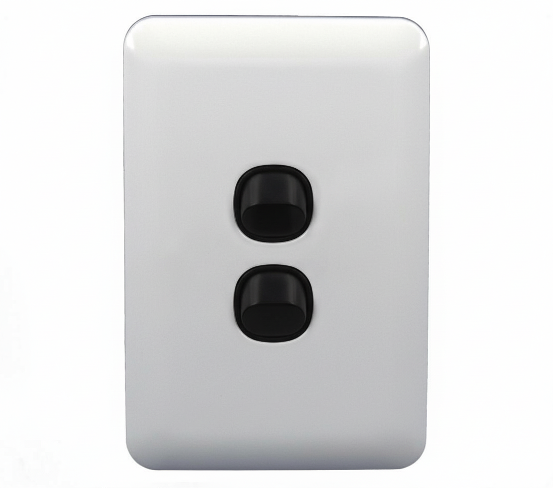 - Form Factor: Slim Wafer style white (with black switch mechanism) plate with 2 Gang(s). Choose between the classic form for standard fittings or Architrave for slimline installation in narrow spaces (door frames, skirtings).