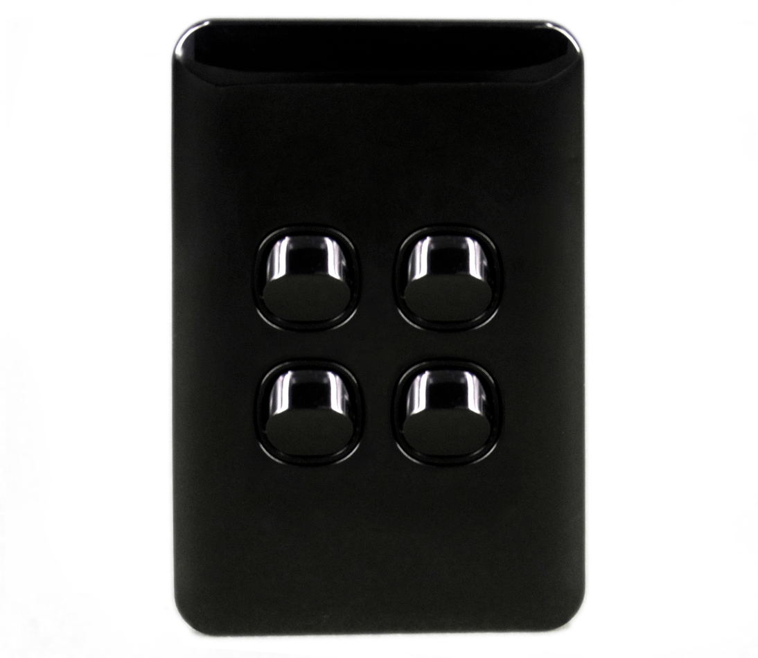 - Form Factor: Slim Wafer style black plate with 4 Gang(s). Choose between the classic form for standard fittings or Architrave for slimline installation in narrow spaces (door frames, skirtings).