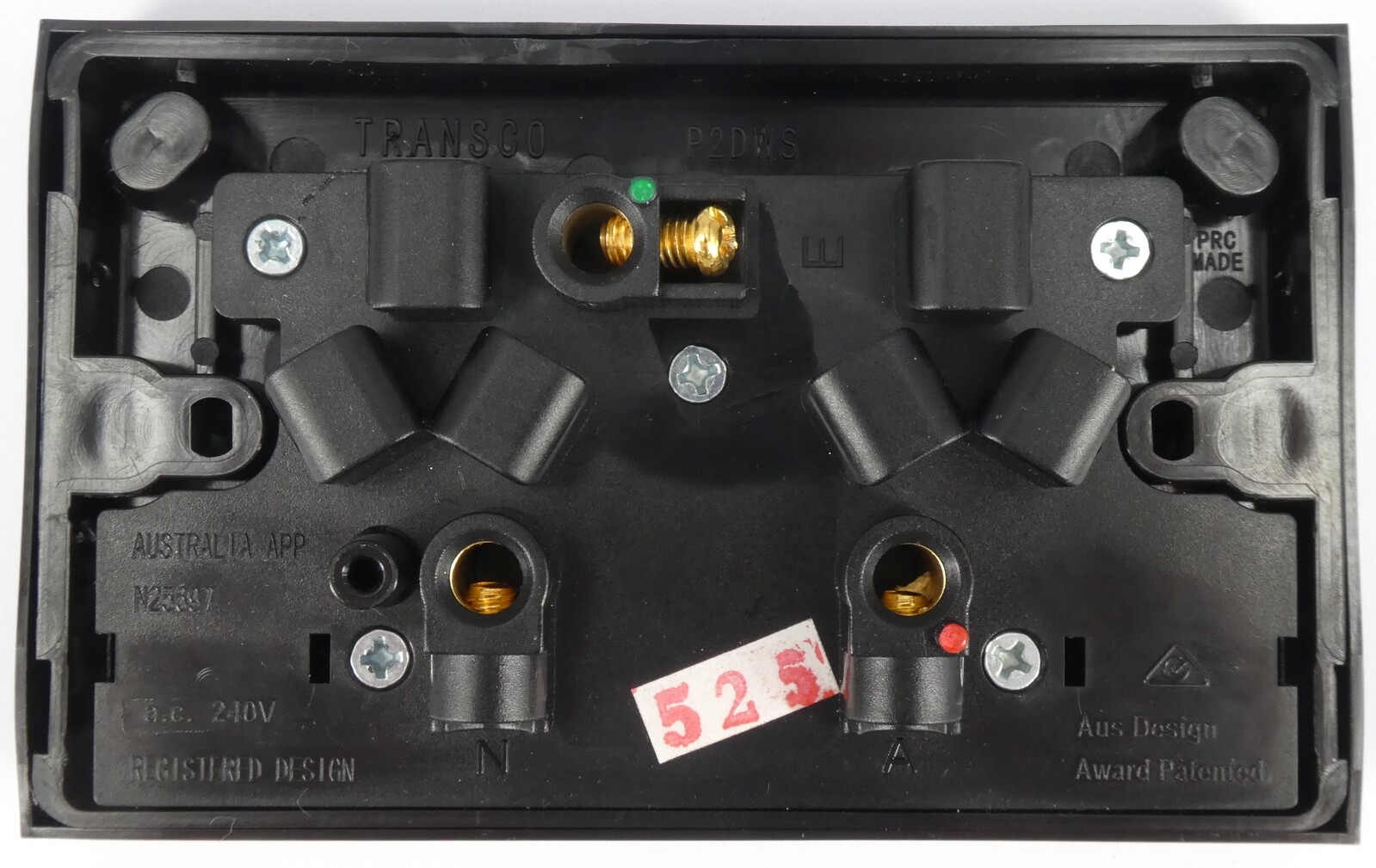 Transco Flush Double Power Point Double Pole with Neon Indicator 15A IP65 Black